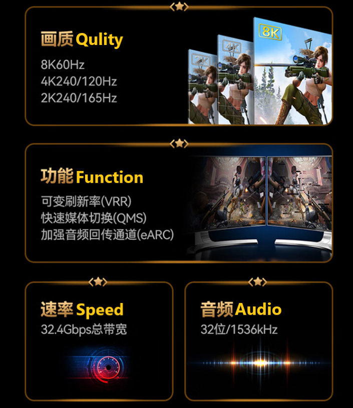 8K/60Hz, 4K/165Hz, 2k/240Hz
