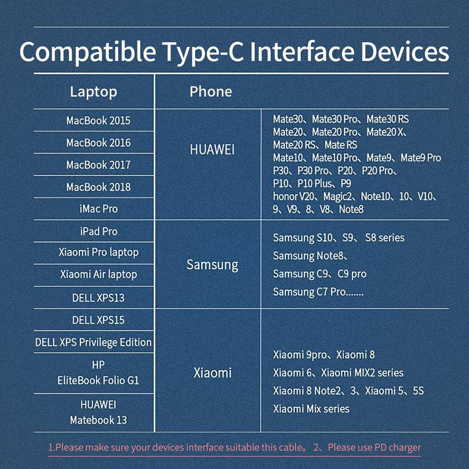 Это кабель USB C — USB C 3.1 Gen 2, полностью совместимый с портом USB C 3.1 Gen 2 и портом Thunderbolt 3. Функция видео работает только для тех устройств, порт USB-C которых поддерживает альтернативный режим DP. До 100 Вт, 20 В, 5 А, поддержка Power Delivery, что сравнимо с полноскоростным оригинальным шнуром (фактическая скорость зарядки зависит от вашего устройства и сетевого зарядного устройства: оригинальное зарядное устройство на 96 Вт — при полной мощности 96 Вт, оригинальное зарядное устройство на 45 Вт — при полной мощности 45 Вт)