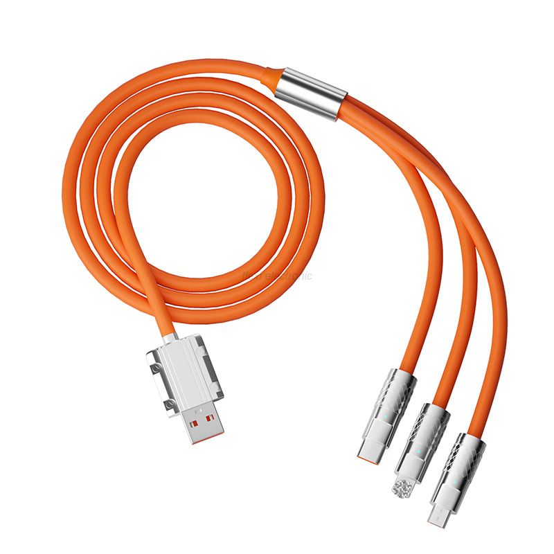 สายเคเบิลข้อมูลซิลิโคนชาร์จเร็ว 120W 3 in 1