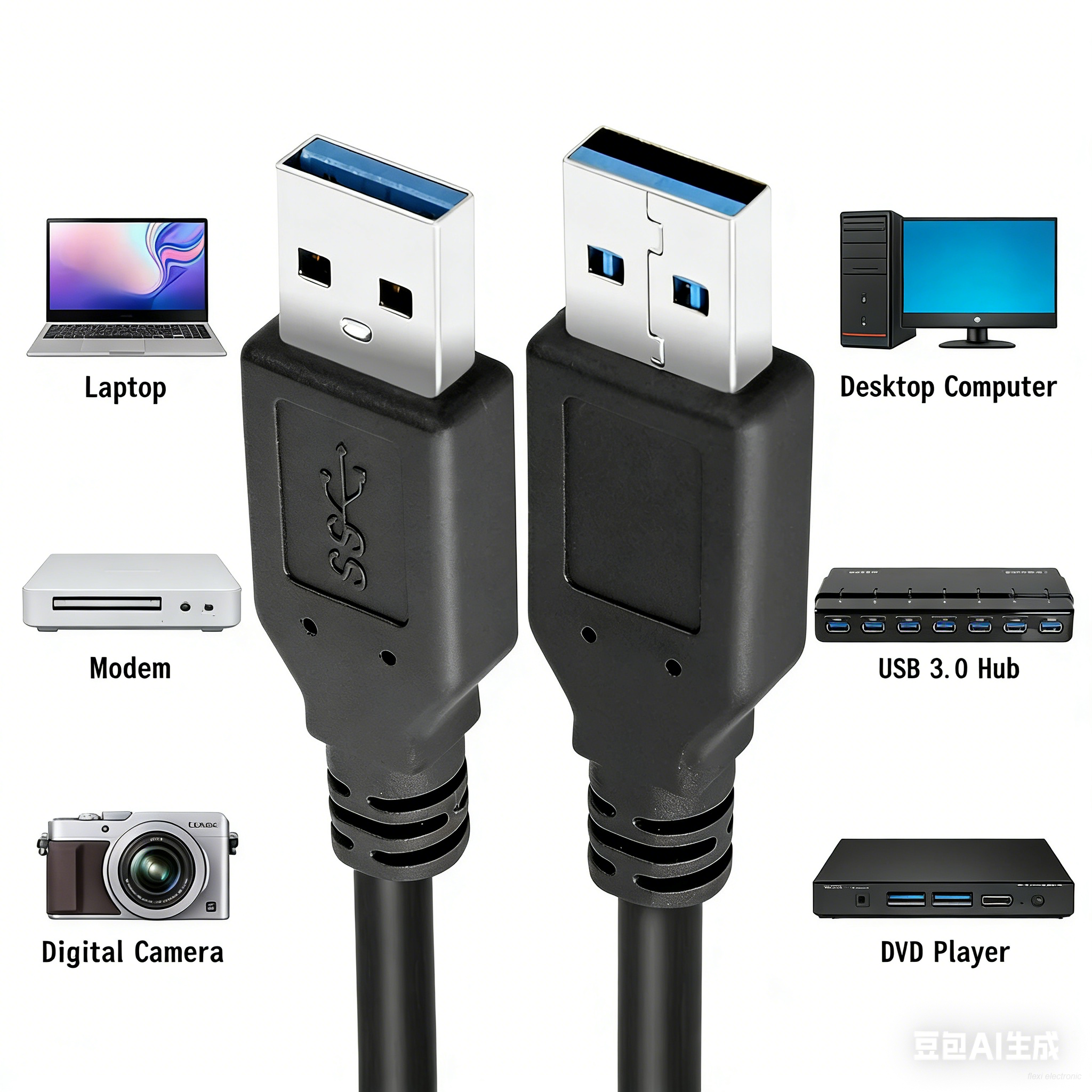 USB 3.0 A Male to A Male Cable – High-speed data transfer cable designed to connect two USB-A enabled devices, ideal for data sync, charging, and peripheral extension.