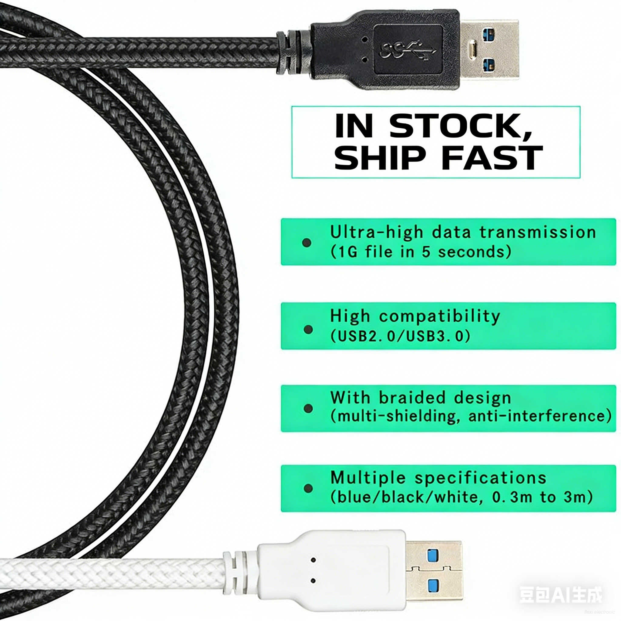 • Strain relief design: Prevents fraying at cable ends